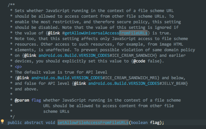 在Android 4.2版本以前,使用prompt,console.log,alert方式,这三个方法对js里是属性原生的,在android webview这一层是可以重写这三个方法的。一般我们使用prompt,因为这个在js里使用的不多,用来和native通讯副作用比较少。